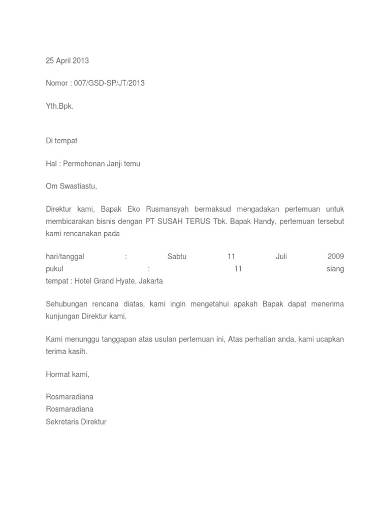 Contoh Surat Permohonan Janji Temu Dalam Bahasa Inggris Otosection