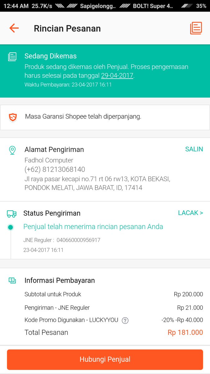 Paket kamu tidak bergerak dan status tidak berubah. 11 Jakarta Barat 11440 Indonesia. Tapi ngga dikirim2 smp H-7 lebaran.